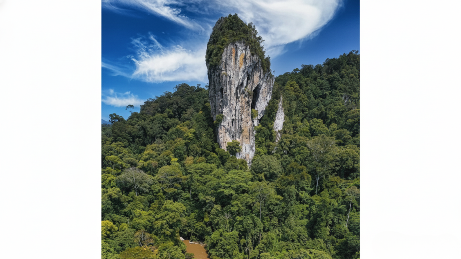 Hidden deep in Sabah’s interior, far from the bustling cities and beaches, stands Batu Punggul Sabah a magnificent limestone pinnacle that pierces the forest canopy. This towering natural monolith rises 200 meters above the surrounding jungle and the emerald waters of the Sapulut River, creating one of Borneo’s most breathtaking sights.
