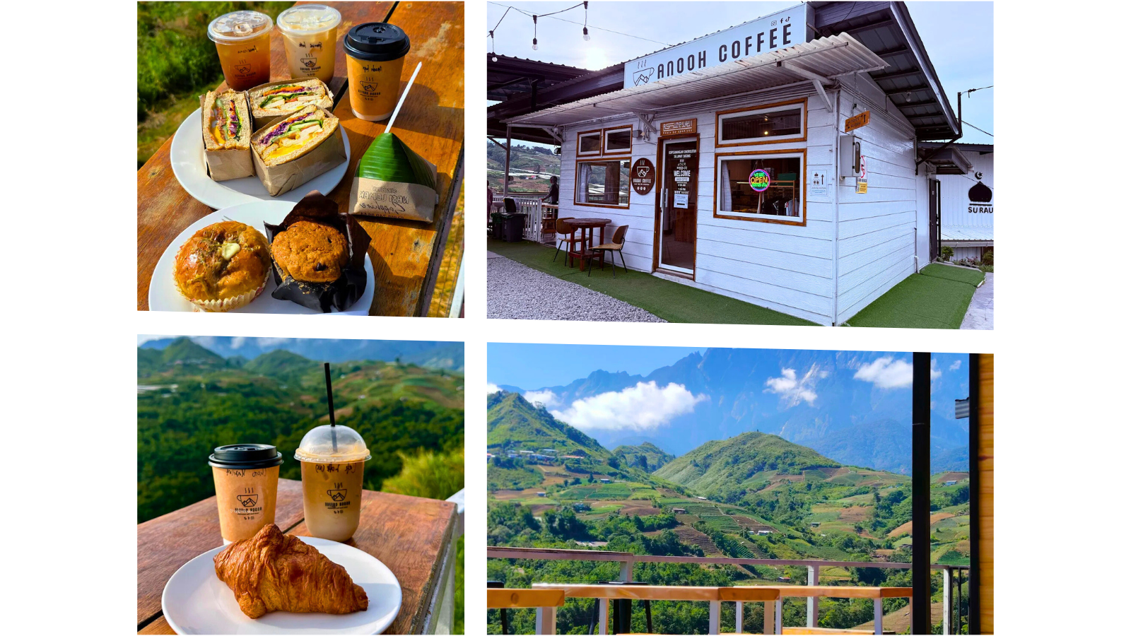 Experiencing a cafe in Kundasang is not just about drinking coffee — it’s about enjoying scenic landscapes, fresh highland produce, cosy atmospheres, and unique cultural experiences. From the modern charm of Anooh Coffee to the panoramic vistas at The Terrace Kinabalu, every café has its own story and special offerings.