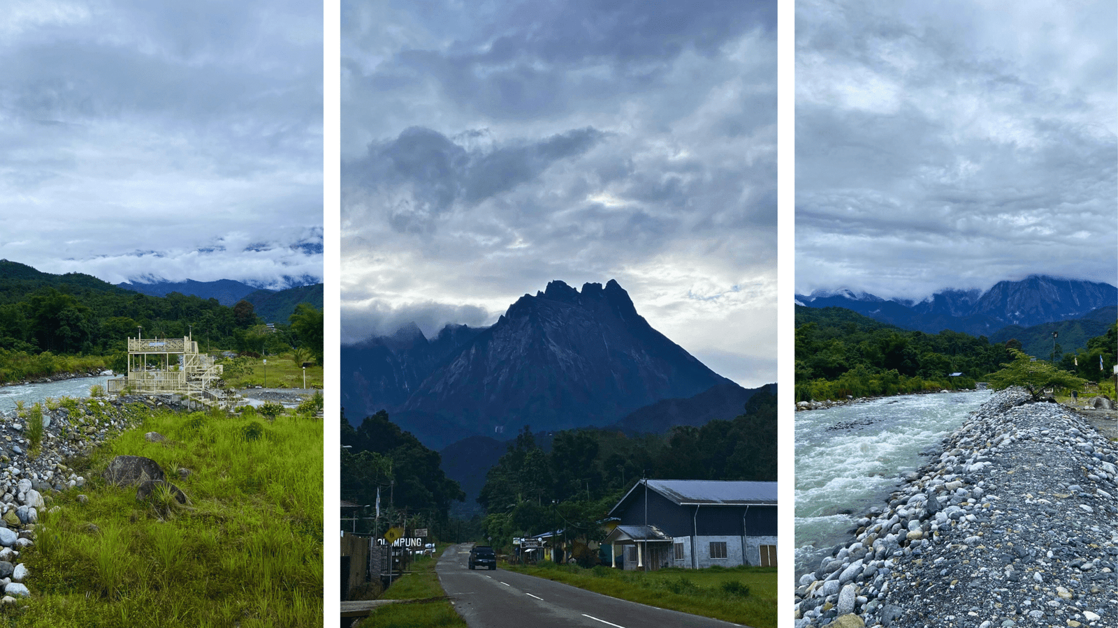 The final stretch is a pleasant drive through countryside roads, with views of paddy fields, small wooden houses, and Mount Kinabalu peeking in the distance.