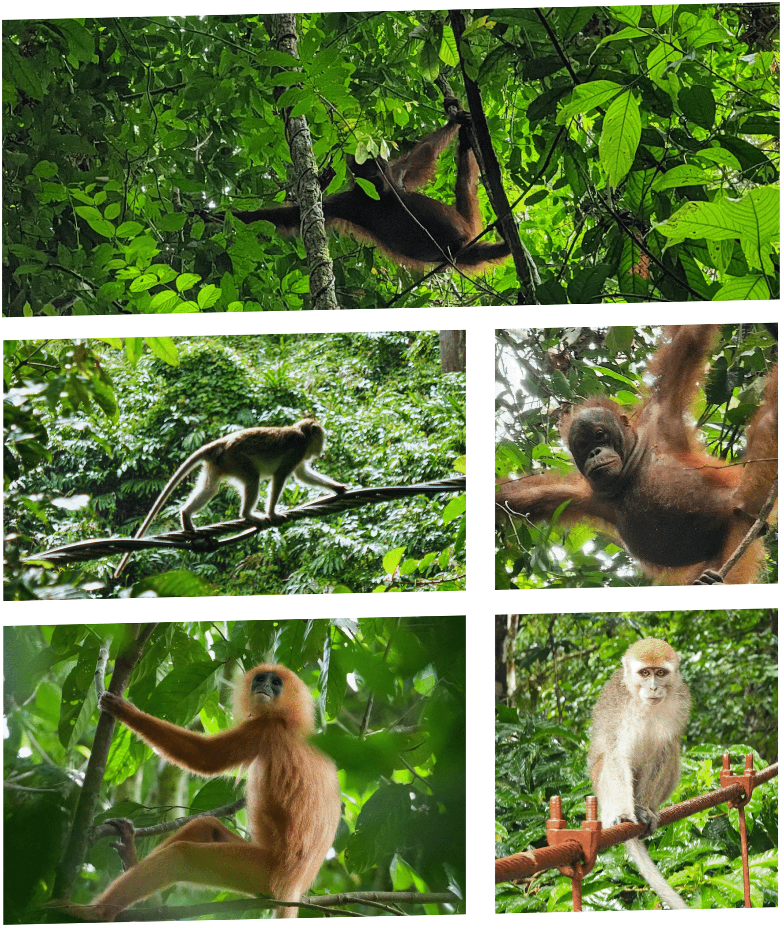 Bornean Orangutans – often spotted foraging high in the canopy.